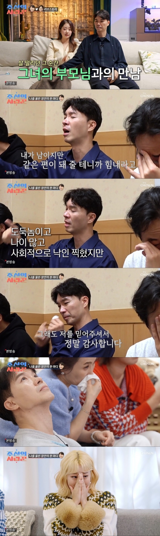 이후 박수홍은 장인어른의 결혼 반대와 응원 과정에 눈물을 쏟았다.