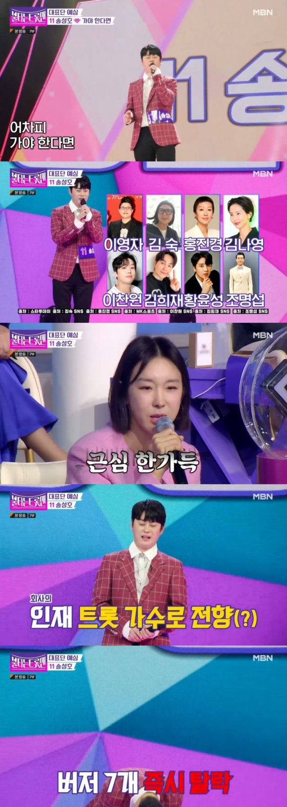 이후 송성호는 귀여운 안무와 함께 '가야 한다면'을 열창했지만 버저 7개로 아쉽게 탈락했다.