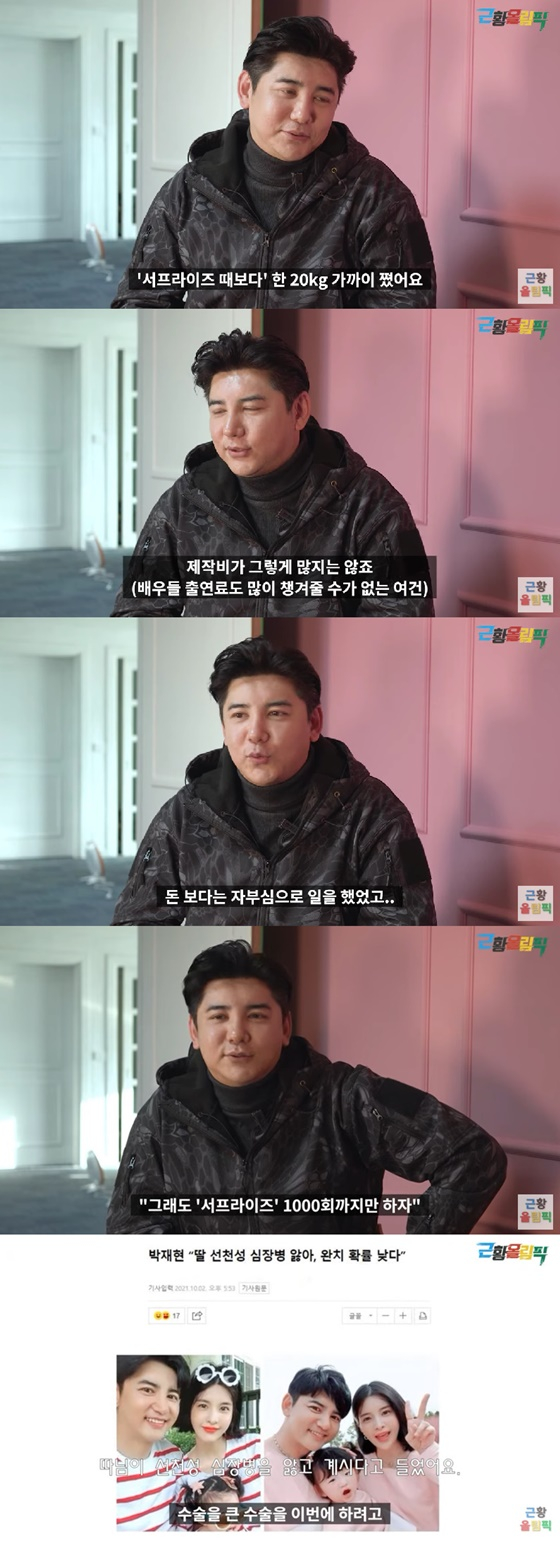 또한 박재현은 '서프라이즈' 출연료를 공개하기도 했다. 그는 "(프로그램) 제작비가 많지는 않다. 회당 출연료가 100만원 이하였다. 내가 하고 싶은 일을 하는 거니까 돈보다는 자부심으로 일했다"고 말했다.