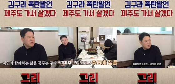 공개된 영상에는 아들 그리와 은퇴 후 계획을 세우는 김구라의 모습이 담겼다. 김구라는 "이제 나이 오십 넘어서는 일산에서 살기 좋다. 또 마무리는 제주도에서 살려고 한다"고 밝혔다.