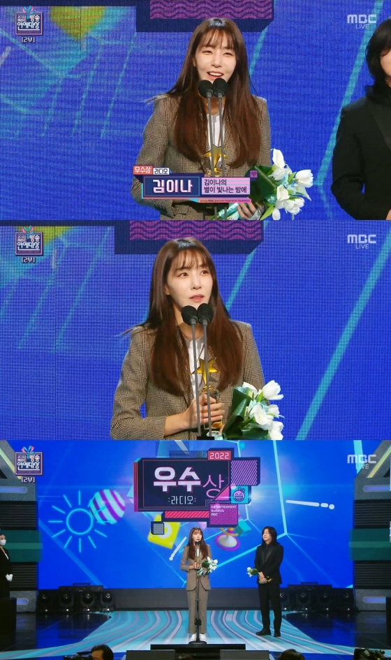 스타 작사가 김이나가 '2022 MBC 방송연예대상'에서 라디오 부문 우수상의 영예를 안았다.