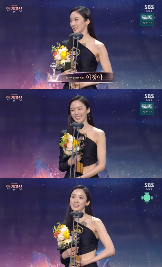 'SBS 연기대상' 배우 이청아가 베스트 퍼포먼스상을 수상했다.