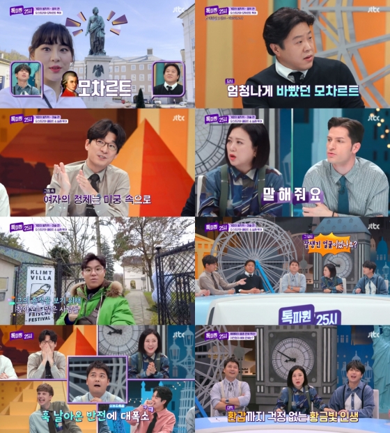 2일 방송된 JTBC '톡파원 25시'(연출 홍상훈)에서는 수교 131주년을 맞이한 오스트리아에서 예술가들의 발자취를 따라가며 흥미를 고조시켰다. 안우성 지휘자와 이창용 도슨트의 설명이 더해져 모차르트, 구스타프 클림트, 에곤 실레까지 음악과 미술계 거장들에 대해 깊이 있게 알아볼 수 있었다.
