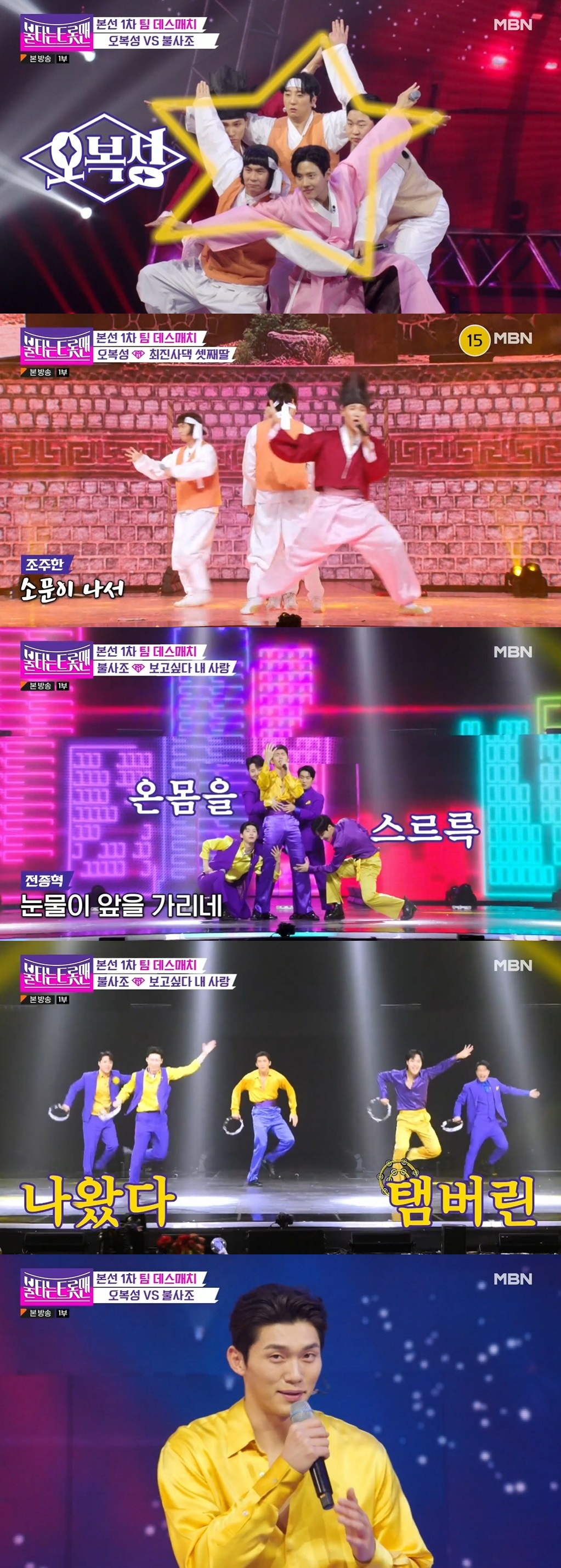 3일 오후 방송된 MBN '불타는 트롯맨'에는 오복성(조주한, 박민호, 펑크 리얼 무브)과 불사조(전종혁, 최윤하, 불타는 소년단)가 본선 1차 팀 데스매치 대결을 펼쳤다.