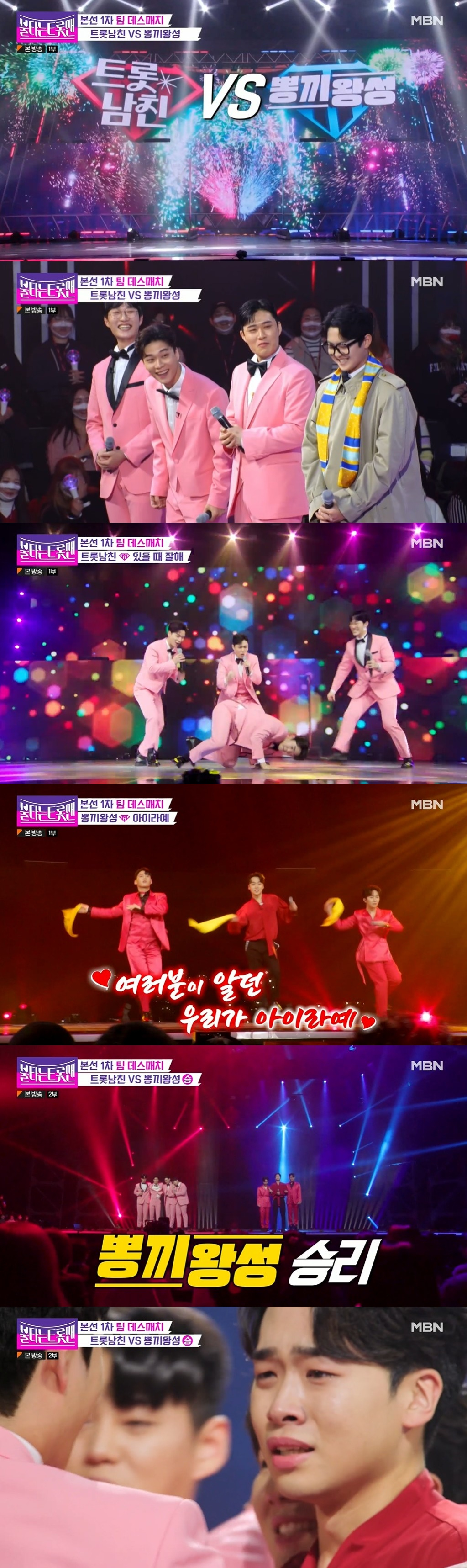 한편 뽕끼왕성팀 이수호는 이어지는 대결 트롯남친(공훈 오혜빈 김정민 박민수)과의 대결에서 승리해 감격의 눈물을 흘렸다.