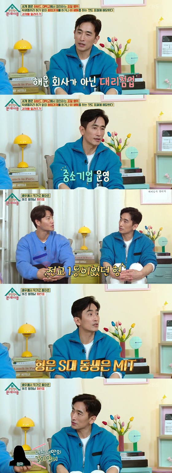 또한 차인표는 엘리트였던 형제들을 언급하기도 했다. 그는 "우리가 삼형제인데 형이랑 동생이 공부를 잘했다"며 "형은 서울대, 동생은 MIT였다"고 말했다.