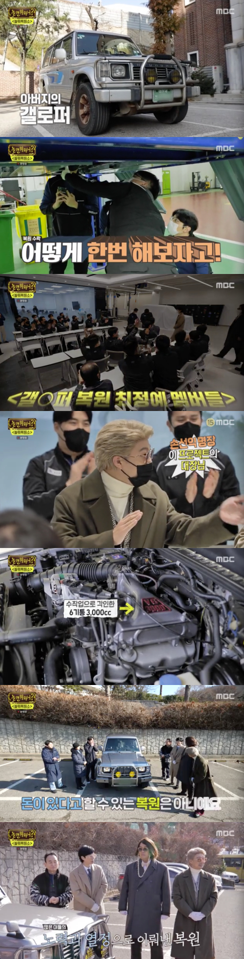 아버지는 "이 추위에 너무 고생하셨다. 이렇게 멋지게 꾸며놓으셨는데 상상을 못했다. 앞으로 오래도록 잘 타겠다. 너무 감사하다"고 엔지니어들을 향한 고마운 마음을 전했다. 의뢰인도 "저는 처음에 의뢰할때 아예 불가능할거라 생각하고 기대를 못했다. 완전히 새차가 돼서 '놀면 뭐하니', 같이 해주신분들께 너무 감사하다"고 말했다. 유재석은 "부천 갤로퍼는 명물이다. 단순히 돈이 있다고 할수있는 복원이 아니다. 엔지니어 분들과 자동차 회사에서 협조해줬기에 가능한 복원이었다. 가족분들에게 멋진 차량 복원해주신 많은분들께 다시한번 감사드린다"라며 뿌듯함을 전했다.
