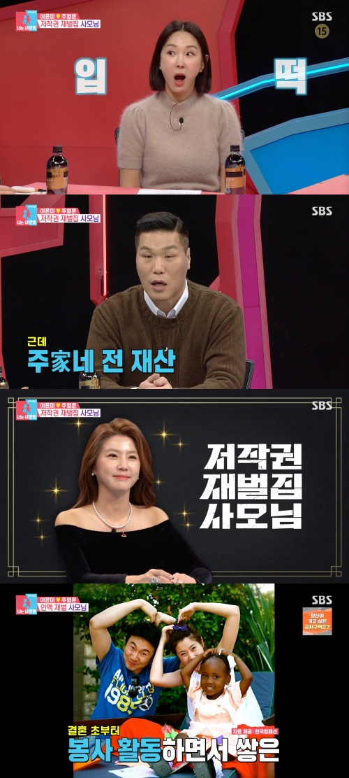 이날 MC들은 이윤미의 남편 주영훈이 작곡 수만 466개라며 "전 재산을 이윤미 씨한테 넘겼다는 게 사실이냐"고 물었다. 이윤미는 "그런 말을 많이 한다. 저는 받은 적이 없다"고 밝혔다. 이윤미는 "사실 비밀번호도 알고는 있지만 제가 관리하지는 않는다. 기사 보면 내가 산 건데 '저작권료'라는 말이 붙는다"고 전했다.