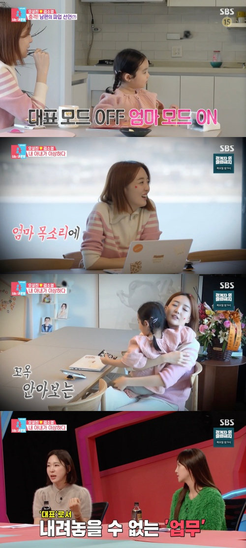 이날 김소영의 엄마는 항상 바쁘게 사는 딸 김소영에 힘든 점이 있으면 털어놓으라고 전했다. 김소영은 "힘든 점이 없다"고 답했다. 귀가한 오상진은 김소영의 표정을 보고 이상함을 감지했다. 김소영은 엄마와 통화를 했는데 기분이 좀 이상했다고 전했다. 오상진은 "힘들어?"라고 물었다. 김소영은 "오빠도 알다시피 일도 잘돼"라고 전했다. 오상진은 "'좋다'고는 얘기하는데 걱정이 되는 거지"라고 전했다.