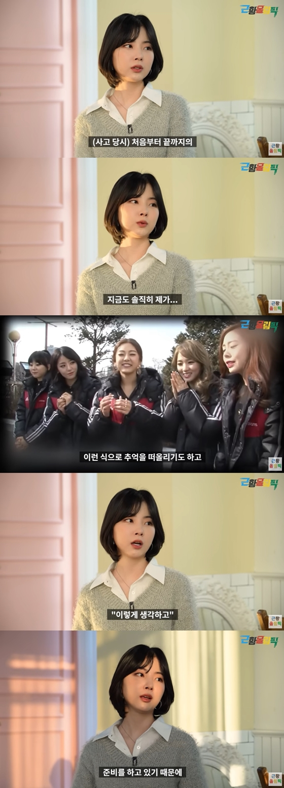 주니는 " 그때는 거의 1년 정도는 밖에 안 나갔던 거 같아요. 솔직히 누구 보고 싶지도 않앗어요. 왜나면 만나면 '너 괜찮아?' 이런 말 듣기도 싫었고"라면서 "그거 자체를 언급하는 거를 듣고 싶지도 않았기 때문에. 한번씩 얘기만 나와도 눈물이 나고. 지금도 얘기를 하면서도 그 순간이 생각나고. 언니들이 지금도 보고 싶고 하니까 엄청 막 눈물도 나고 이랬었는데, 참는 거죠"라고 말했다.