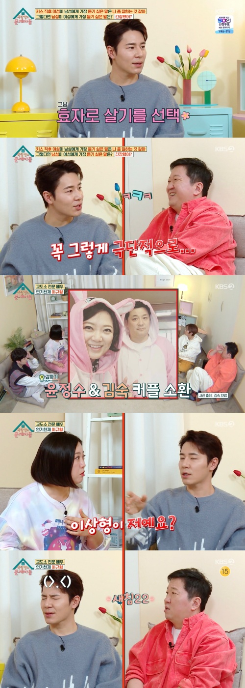 정형돈은 "연예인분으로 따지면 이상형에 가까운 분은?"라고 물었다. 이규형은 김숙에 "가상 결혼생활하셨는데 연애하는 모습이 좋았다"고 전했다. 김숙은 "이상형이 저 인거냐"고 물었다. 이규형은 눈을 질끈 감으며 "아이고"라며 대답을 망설였다. 이규형은 "그런 커플이 이상적이다"라고 답한 뒤 정형돈에 "잘 빠져나왔냐"고 말해 폭소케했다.