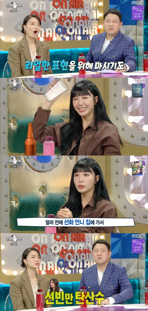 MC 안영미는 "출연하시는 분들 술을 다 드시냐"고 물었다. 정은지는 "선빈 씨는 잘 못 즐긴다. 얼마 전에 선화 언니 집에 가서 맛있는 음식 해줘서 와인 한잔하는데 선빈 씨만 탄산수를 마신다. 술이 맛이 없다고 한다"고 전했다. 정은지는 '술꾼도시여자들2' 촬영할 때 술을 마셔도 술톤이 나오지 않아 힘들다고 전했다.