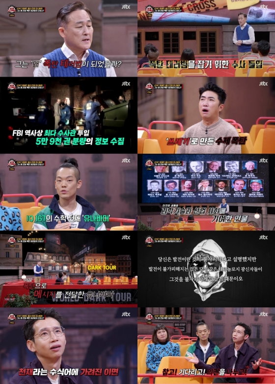 지난 11일 방송된 JTBC '세계 다크투어'에서는 하버드 대학 출신 IQ 167의 수학 천재에서 끔찍한 폭탄 테러범이 된 유나바머(Unabomber, University+Airline+bomber)의 모든 것을 짚어보며 사회적 문제를 해결하기 위한 연대의 필요성을 되짚었다.