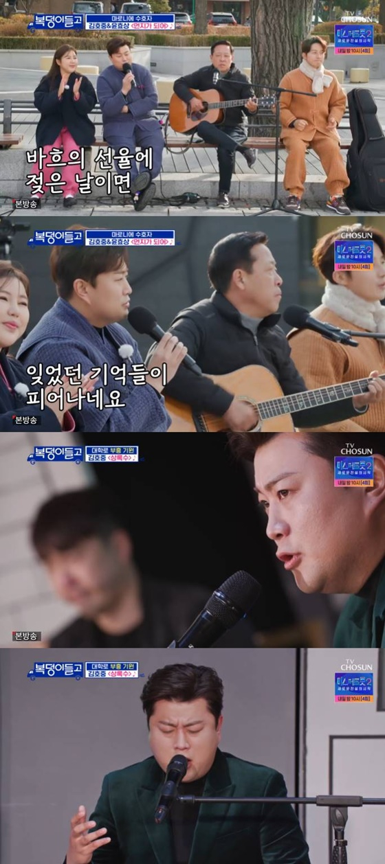 김호중은 지난 11일 방송된 TV조선 예능 프로그램 '복덩이들고'에서 송가인과 함께 대학로를 방문했다.