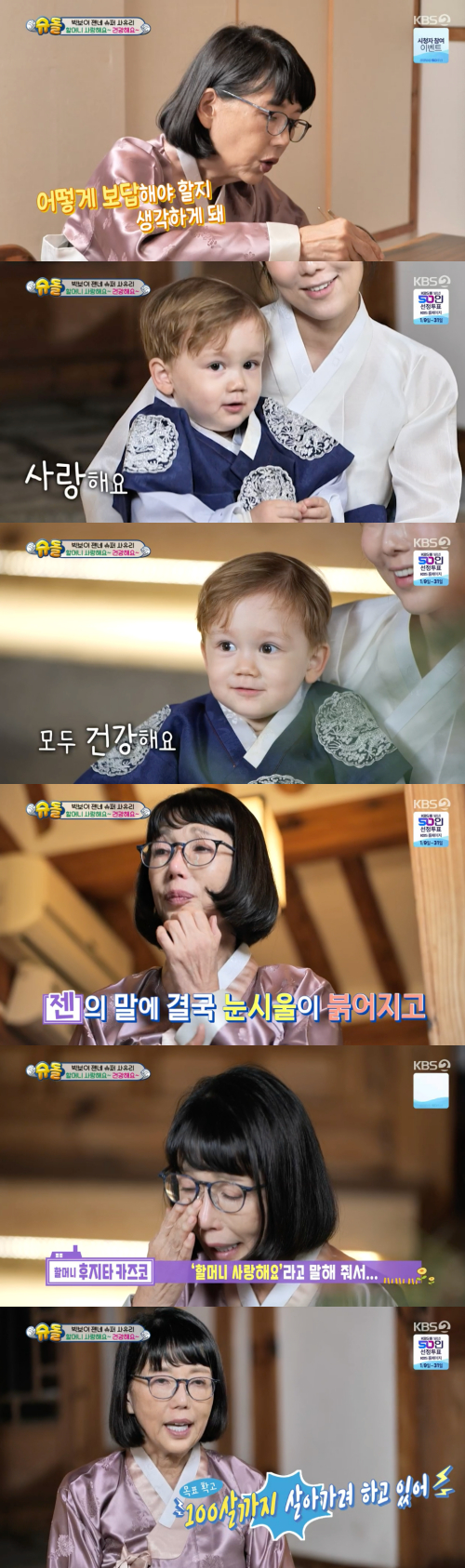 사유리의 어머니는 젠이 한국어로 "할머니 사랑해요, 건강해요"라고 말하자 감동의 눈물을 터뜨렸다. 사유리의 어머니는 "젠 이야기를 할 땐 안 울기가 힘들다. 진심이 담기니까"라며 눈물을 훔쳤다. 어머니는 "젠과 딸을 매우 예뻐해 주셔서 정말 감사하게 생각한다. 젠을 한국분들이 매우 예뻐해 주셔서. 이렇게 사랑받아서 정말 기쁘다. 언젠가 이 은혜를 꼭 갚고 싶다"라고 말하며 울컥했다. 이어 "100살까지 살아가려고 하겠다"라며 굳은 새해 결심을 전했다.