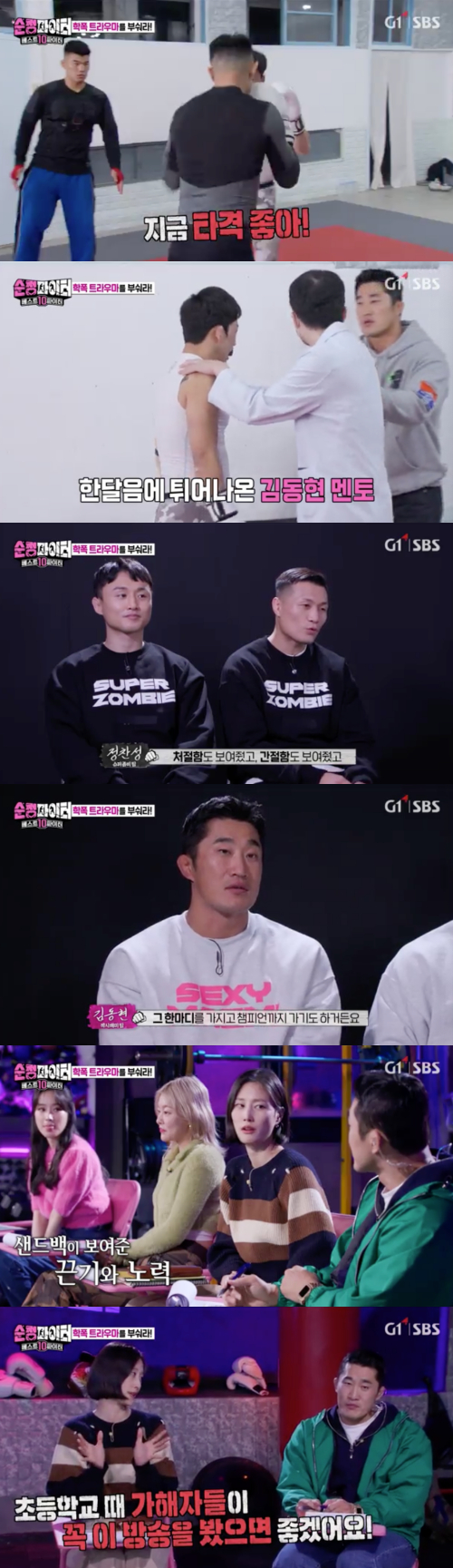 이어 정찬성은 "강해지기 위해 운동하는 사람이 가장 센 것 같다. 원래 강했던 사람보다"라고 말했다. 김동현은 "'순정파이터'에서 제가 찾던 선수다"라고 소감을 전했다. 이에 샌드백은 "제가 못한다고 생각해 포기하고 싶었던 적도 많은데"라며 눈물을 흘렸다.