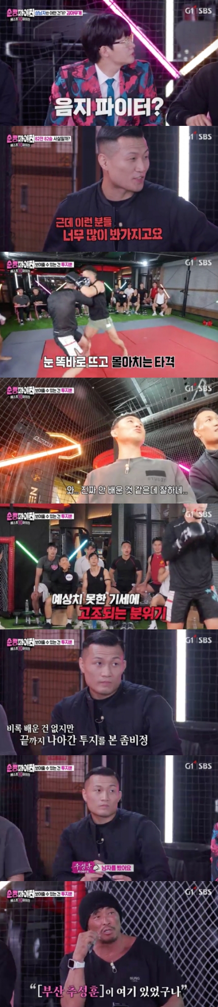 앞서 '순정파이터'는 넷플릭스 드라마 '더 글로리' 현실판으로 주목받았던 '샌드백' 사연을 소개했다. 학폭 트라우마를 극복하기 위해 격투기에 도전한 '샌드백'은 실력 검증 테스트를 보여줬다. 추성훈은 "상대 코치님이 타격을 잘하는데도 앞으로 나아가는 것이 멋있었다. 별명 이제 샌드백이 아니다. 이제 주먹이다. 핵주먹"라며 응원했다.