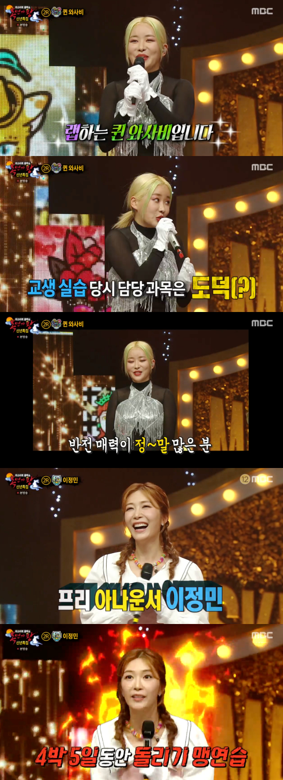 이어 공개된 해피뉴이어 가랜드의 정체는 바로 래퍼 퀸 와사비였다. 퀸 와사비는 해물탕을 시켰는데 와사비 간장이 함께 나왔다며 "기발하고 골 때리면서 귀엽기까지 한 게 나랑 똑같았다"고 이름의 비화를 밝혀 웃음을 자아냈다. 퀸 와사비는 또한 매콤한 이미지와는 달리 과거 사범대를 졸업했으며 "교생 실습 과목은 도덕"이라는 반전 매력까지 공개해 탄성을 안겼다.