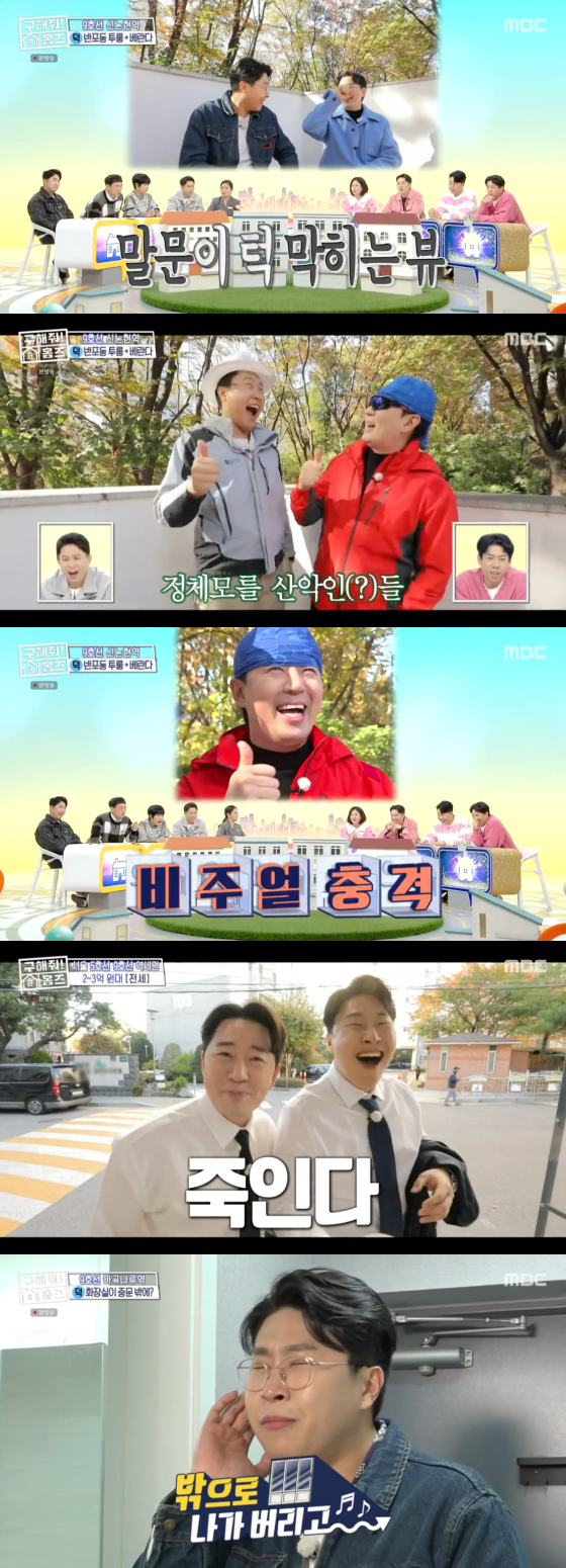또한 이 집은 단독으로 누릴 수 있는 고즈넉한 야외 베란다가 마련돼 있어 탄성을 더했다. 붐은 "이 세대만 양방향으로 자연을 즐길 수 있다"며 "관리도 편하고 활용도 편한 크기"라 어필했다. 함께 자연을 즐기던 두 사람은 곧 '한사랑 산악회'의 일원으로 변신해 코디들을 포복절도하게 했다. 코디들은 특히 붐의 남다른 비주얼에 "진짜 못생겼다", "연예인 안 했으면 어떡할 뻔 했냐"며 웃음을 금치 못했다.