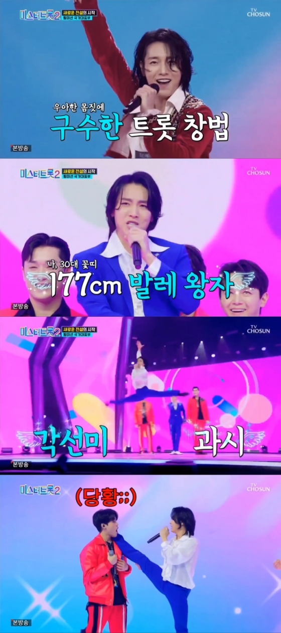 '미스터트롯2' 참가자 정민찬이 트로트에 발레를 접목시킨 퍼포먼스로 시청자들의 이목을 끌고 있다.