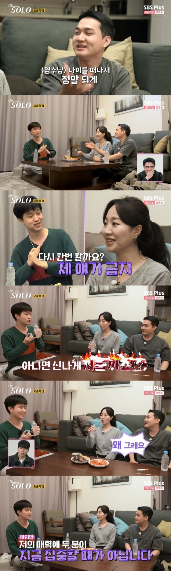 18일 오후 방송된 ENA, SBS PLUS 예능 '나는 솔로' 12기 모태솔로 특집에서는 영숙이 영수, 영식과 2 대 1 야식 데이트를 하는 장면이 담겼다.