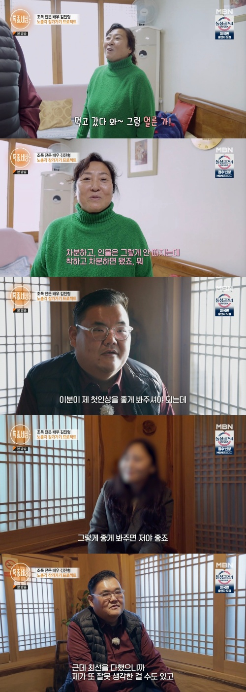 이후 맞선녀가 모습을 드러냈다. 김진형은 맞선녀의 얼굴을 보며 "미인이시네"라며 칭찬했다. 김진형은 맞선녀에 "저에 대해 어떻게 들었냐"고 물었다. 맞선녀는 "옛날에 배우 하신 분이라고 들었다"고 답했다. 김진형은 "외적으로 얘기 안 했냐. 덩치도 크고"라며 외모에 자신감 없는 모습을 보였다. 맞선녀는 "자세한 이야기는 듣지 않았다"고 답했다.