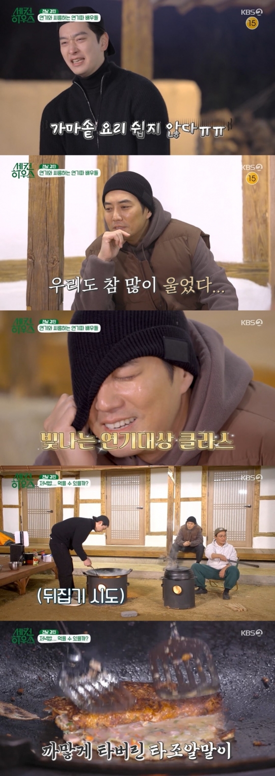 이후 황찬성은 끓는 기름에 타조알을 풀었고 "이건 말이가 안된다"라며 당황했다. 피어오르는 연기 때문에 눈물 흘린 황찬성을 요리를 포기하고 한발 물러서 웃음을 자아냈다. 주상욱은 "우리도 (연기 때문에) 많이 울었다"라며 웃었고, 조재윤은 "우린 이 생황을 3개월째 한다"라며 매운 연기에 공감했다.