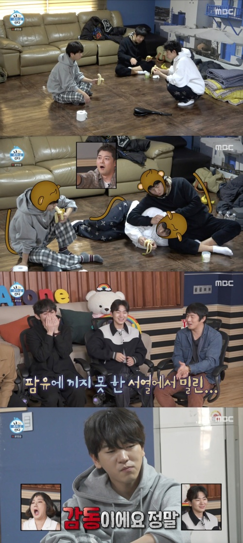 기안84는 바나나를 먹다 말고 자신의 허벅지를 툭툭 치며 코드쿤스트에 "누워"라고 말했다. 기안84는 "우리 코쿤이 귀가 중요하다"며 코드쿤스트의 귀를 청소했다. 전현무는 바나나를 먹으며 서로의 귀를 만지는 모습을 보며 "이거 원숭이들 아니야?"라고 말해 모두가 폭소했다. 기안84는 "팜유에 끼지 못한 서열에서 밀려난 원숭이들"라며 인정했다. 전현무는 셋의 행동을 보며 "기괴하다 기괴해"라고 전했다.