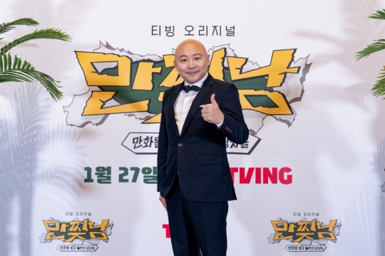 이날 황재석 감독은 "편집 기간이 약 3달 정도가 됐다. 그만큼 기다리시는 시청자들에게 보답할 수 있을 정도의 묵직한 콘텐츠로 찾아오지 않았나 싶다. '침펄기주' 네 분이 출연하는 버라이어툰 장르 예능이다. 만화처럼 어느 공간에 갇혀서 살아야되는 게 주 내용이다"라며 '만찢남'을 소개했다.