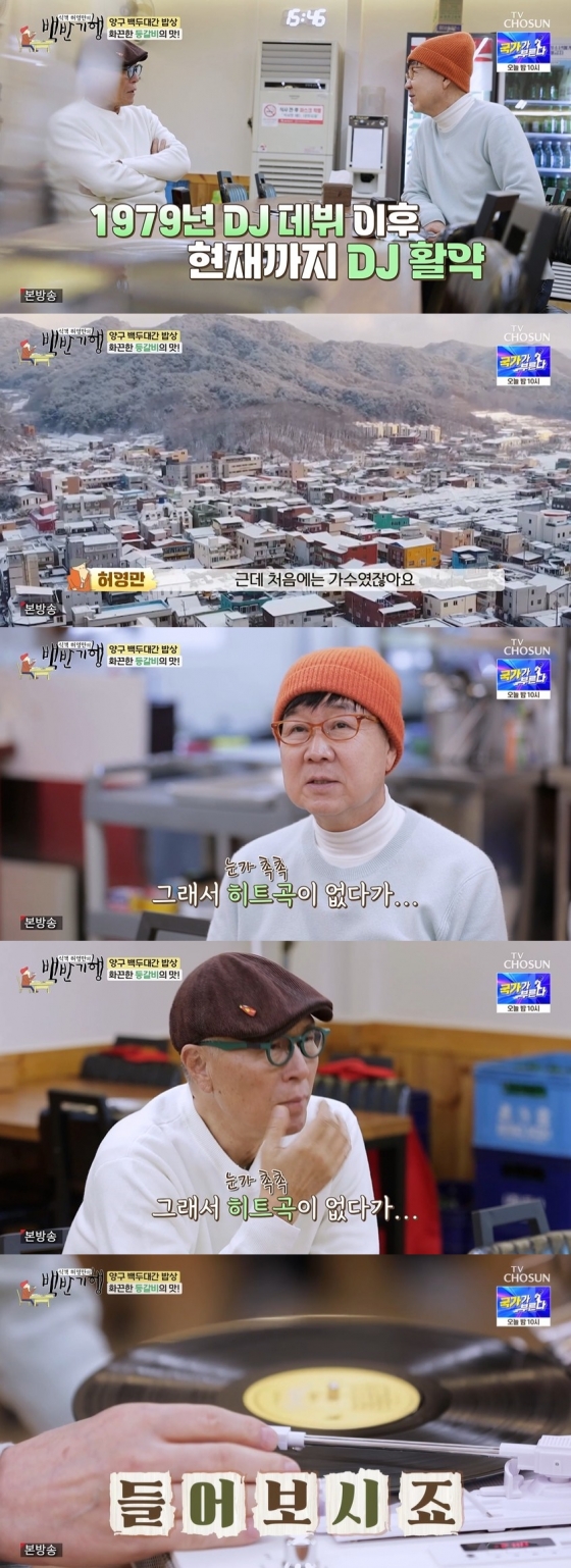 이내 임백천은 LP 판으로 음악을 틀며 "아날로그 시대의 LP 느낌이다. 요즘도 LP가 팔더라"라며 반가워했다. 임백천의 '마음에 쓰는 편지' 노래를 듣던 허영만은 "목소리가 아주 고우시다"라며 감탄했다.