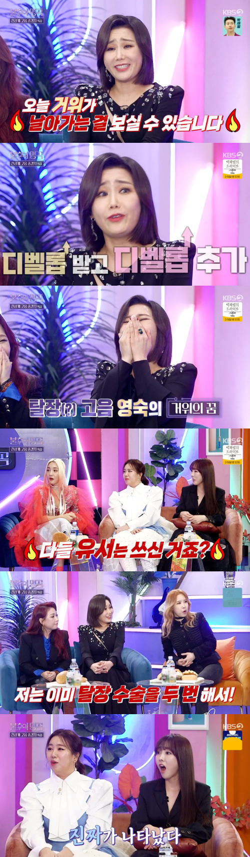 이에 신영숙은 "내가 뭘 가르쳐. 내가 어떻게 바다를 가르치냐. 전 바다의 밝고 아름다운 에너지를 너무 좋아한다. 저는 오늘 좀 무서운 에너지를 보여주겠다. 인순이 '거위의 꿈'을 선곡했다. 오늘 거위가 날아가는 것을 보실 수 있을 거다. 오늘은 고음 특집이니까 디벨롭해서 또 디벨롭할 거다. 창자가 약간 빠질 것 같은 느낌일 것이다"라며 강력한 무대를 예고했다.