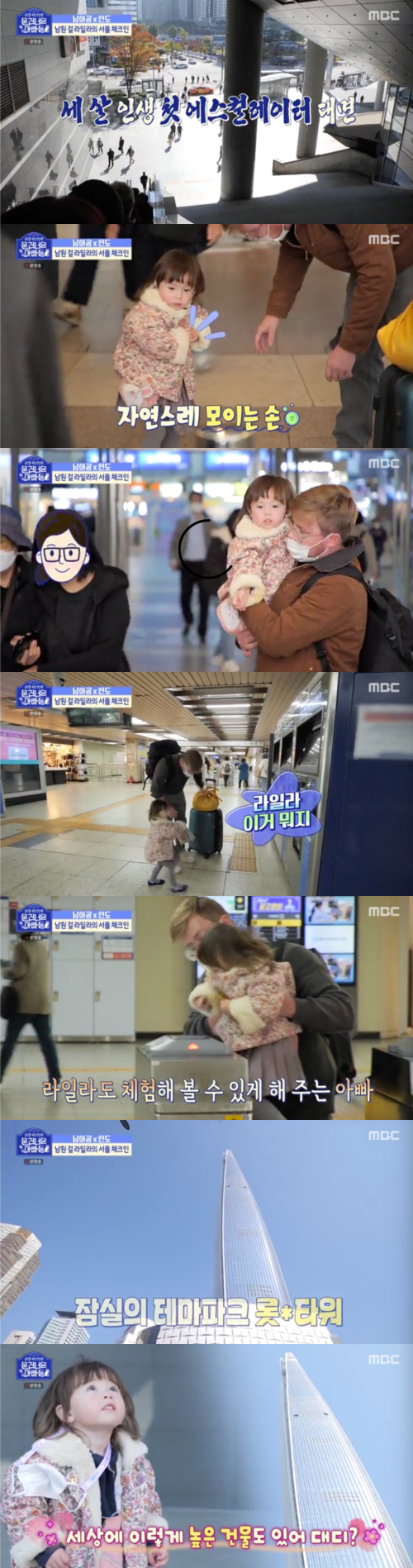 이날 남아공 아빠 앤디는 딸 라일라와 함께 서울 여행을 준비했다. 서울에 도착해 생애 첫 에스컬레이터 탑승을 앞두자, 자연스레 두 손을 모은 채 얼음이 됐다. 이에 아빠 앤디는 무서워하는 라일라를 들고 에스컬레이터에 탑승했다.