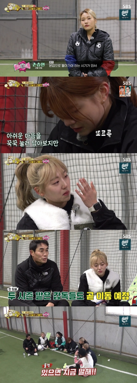 1일 오후 방송된 SBS 예능 프로그램 '골 때리는 그녀들'에서는 손승연이 슈퍼리그 마지막 경기를 앞두고 갑작스러운 이별 통보를 하는 장면이 담겼다.