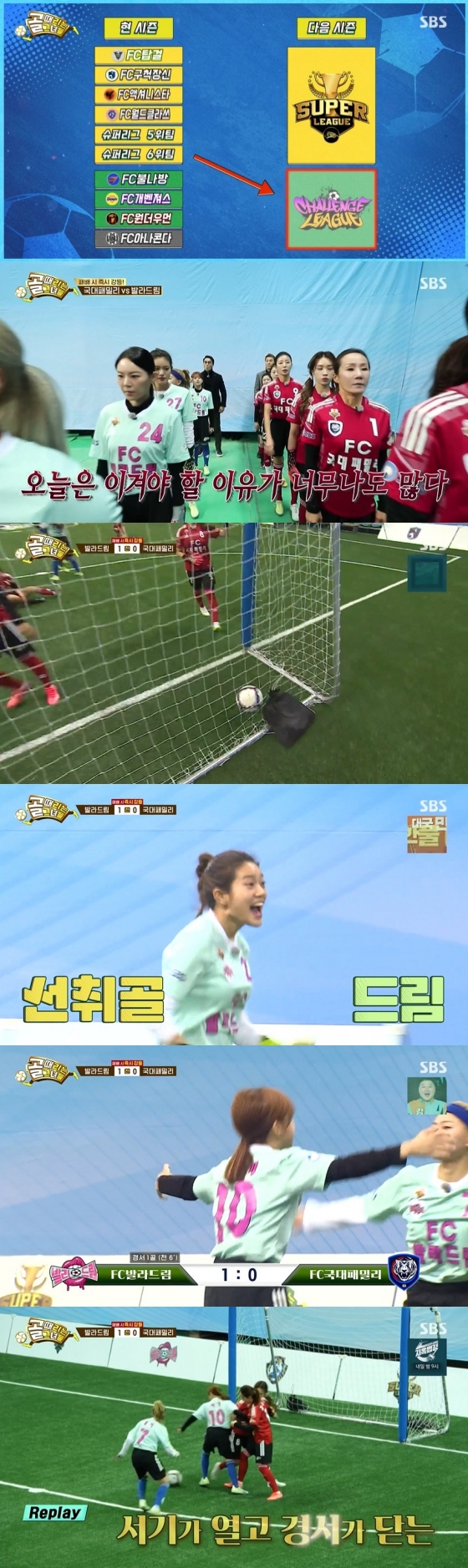 1일 오후 방송된 SBS 예능 프로그램 '골 때리는 그녀들'에서는 FC국대패밀리와 FC발라드림이 챌린지 리그 강등을 피하기 위해 대접전을 펼치는 모습이 담겼다.