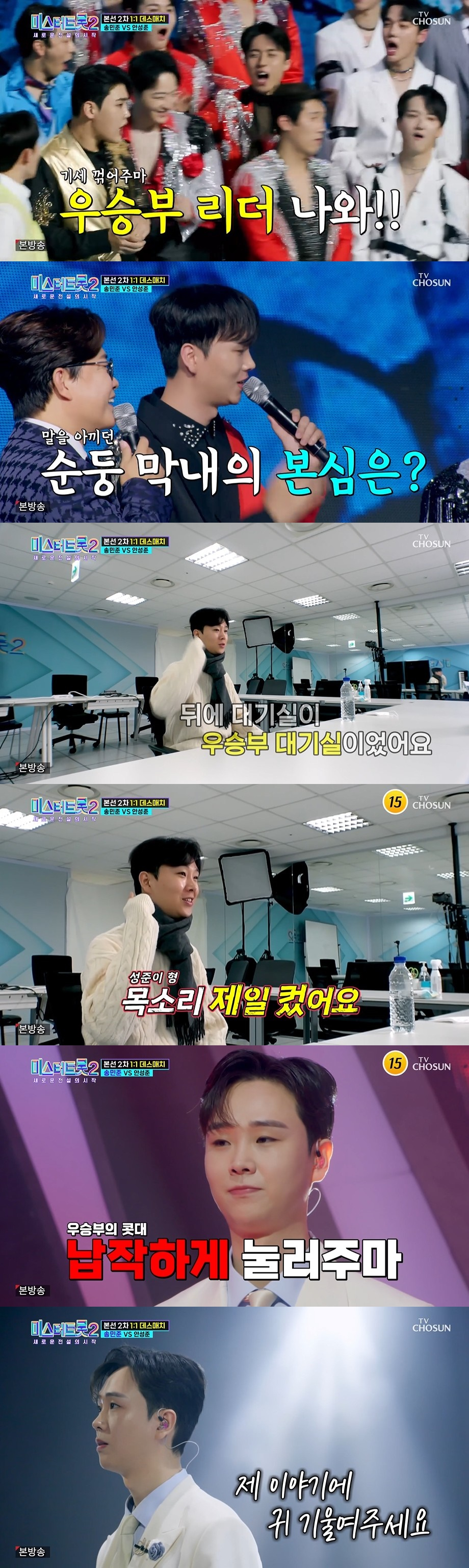 2일 오후 방송된 TV조선 경연 프로그램 '미스터트롯2-새로운 전설의 시작'에서는 본선 2차전인 1 대 1 데스매치 무대가 그려졌다.