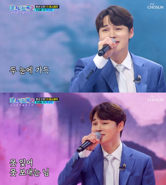 앞서 지난 2일 방송된 '미스터트롯2'에서는 일대일 데스매치 미션이 펼쳐졌다. 대결에서 안성훈과 맞붙은 박서진은 13대2로 패배, 아쉽게 경연에서 탈락했다.