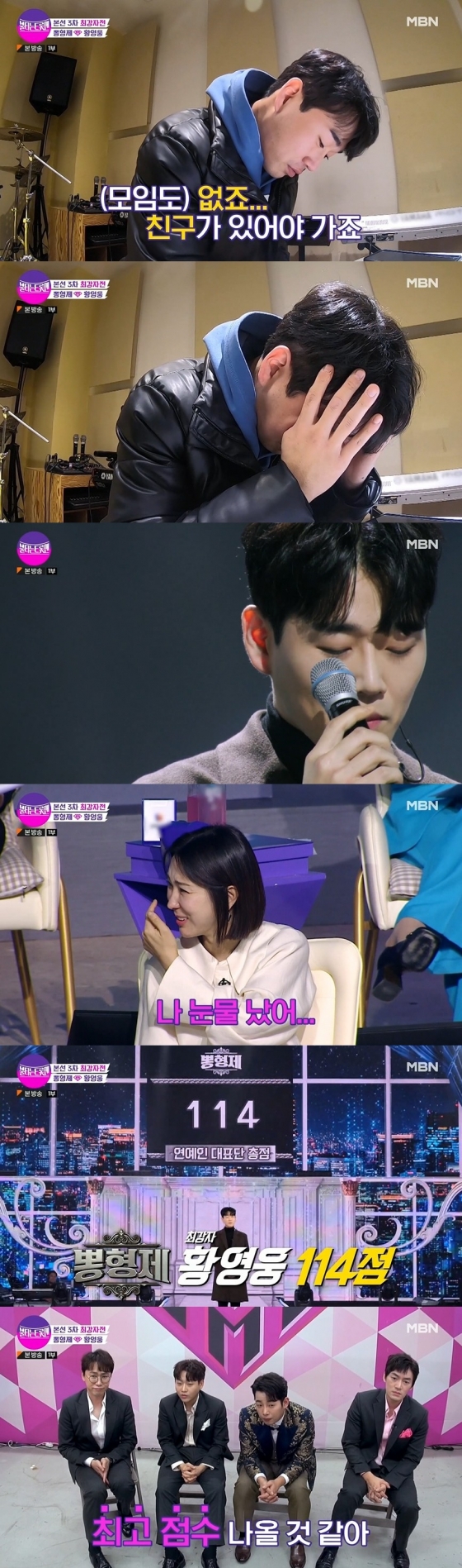 황영웅은 무대에 앞서 "엄마는 스물셋에 결혼하셨다. 우리가 유치원을 다닐 때 IMF로 아빠가 부도가 났다. 그때부터 엄마가 우리를 먹여 살렸다. 엄마가 우리를 키워 주셨다. 그래서 엄마는 친구도 한 명 없고 오롯이 우리만 보고 살았다"라며 눈물을 보였다.