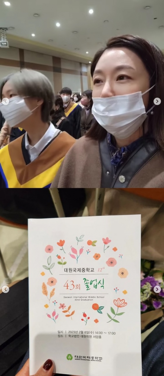 김지혜는 8일 자신의 공식계정에 "박주니 중학교 졸업식. 2023년2월. 고생했어. 사랑해"라는 글과 함께 딸의 졸업식에서 찍은 사진, 영상 등을 공개했다.