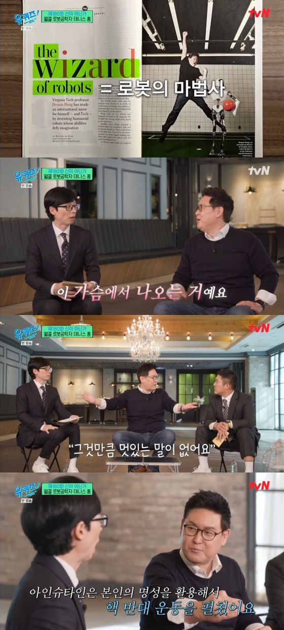 '유 퀴즈 온 더 블럭'에서 데니스 홍이 영화 '스타워즈'를 보고 로봇공학자가 되기로 결심했다고 전했다.
