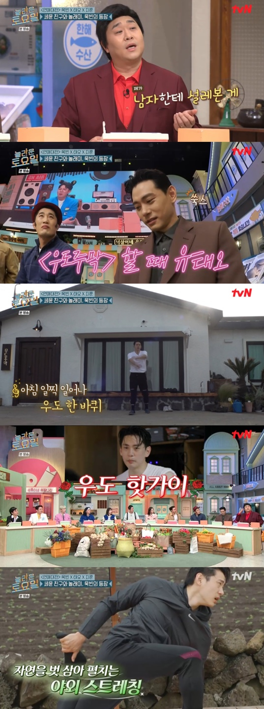 이어 문세윤은 "살면서 남자한테 설레본게 '우도주막' 촬영 당시 유태오한테다"라며 유태오의 매력에 대해 언급했다. "저는 빨리 일어나는 편이다. 그런데 일어나면 옆에 늘 유태오가 없었다. 나보다 더 일찍 일어나는 것이다. '어디갔지'하고 문 열고 나가보면 이미 아침 조깅을 해서 다 젖어있다. 그러면서 '형 일어났어?"라고 인사 하는데 너무 섹시했다"라고 전했다.