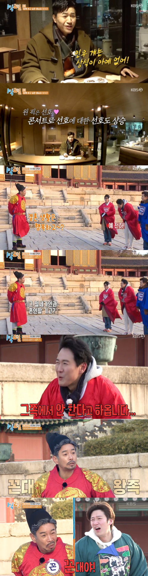 미션 후 인정전에 모인 멤버들은 '꼰종'으로 변신한 김대희를 만났다. 김대희는 멤버들에게 "짐이 오늘 기분이 상당히 안 좋다. 이유는 없다. 그냥 기분이 안 좋다"라며 소리를 쳤다. 이어 연정훈에 "소문으로 듣자 하니 도성 내에 있는 한 절세가인을 보쌈 했다고 하던데 사실인가? 결혼생활은 행복한가?"라고 물었다.