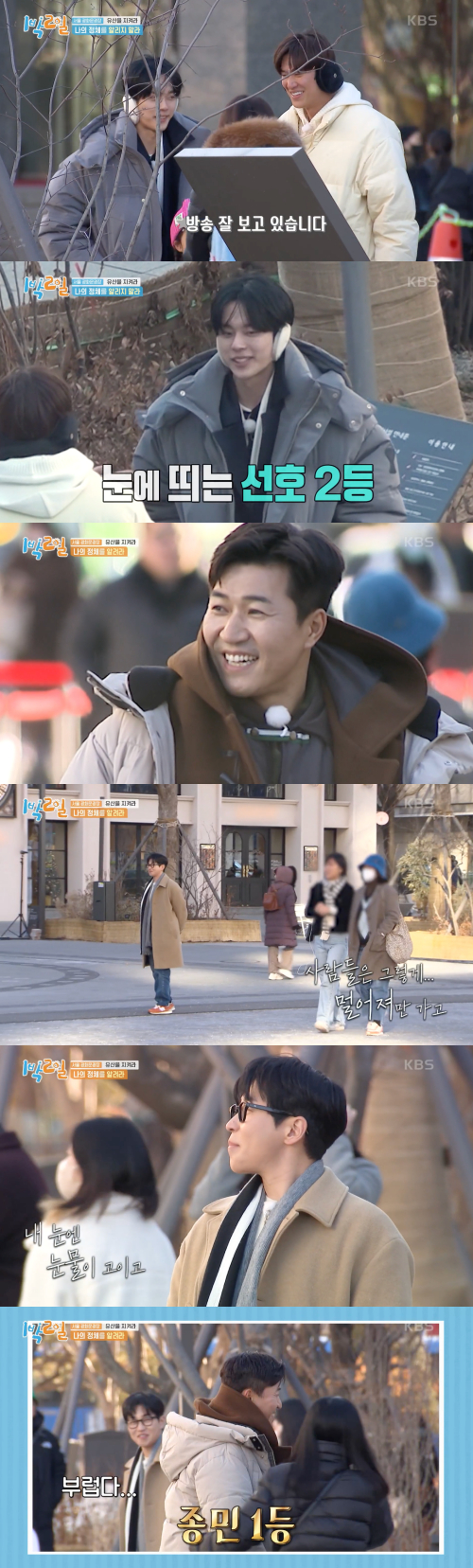 이날 멤버들은 2명이서 팀을 꾸려 창덕궁 인정전으로 모이라는 미션을 전달받았다. 이에 김종민은 "난리 나겠구먼. 나랑 팀 하겠다고"라며 자신감을 드러냈다.
