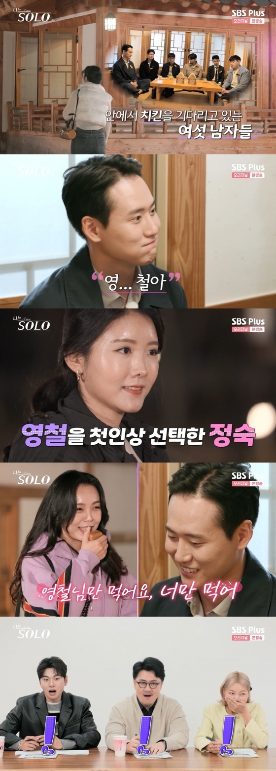 이후 정숙도 "영철아 배고프지? 너만 먹어"라고 영철을 선택했다. 정숙은 "진취적이고 리더십 있는 분을 좋아하는데, 그런 모습이 보이셨다. 첫날이라 서먹서먹했는데 분위기를 잘 이끄셨다. 앞장서서 일을 진행했다. 진취적인 성향이라고 생각했다"라고 말했다.