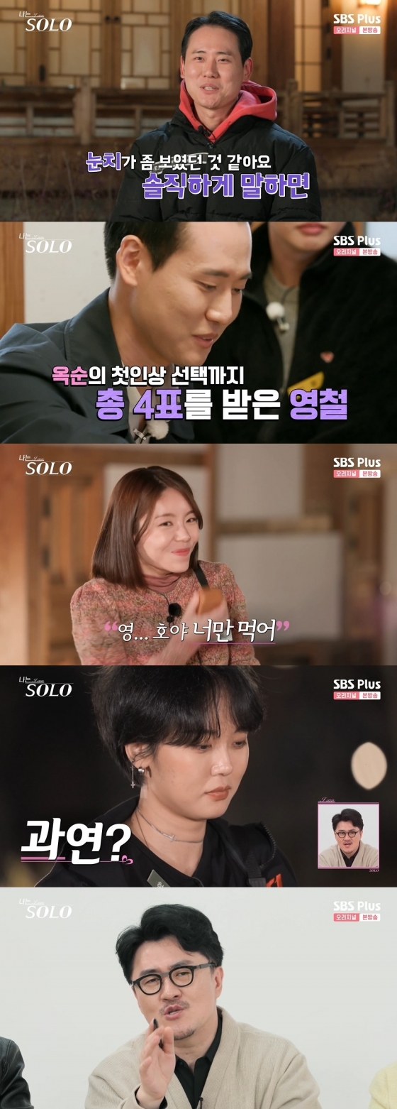'나는 SOLO(나는 솔로)' 13기 영철이 순자·정숙·영자·옥순에게 첫인상 선택에서 몰표를 받았다.