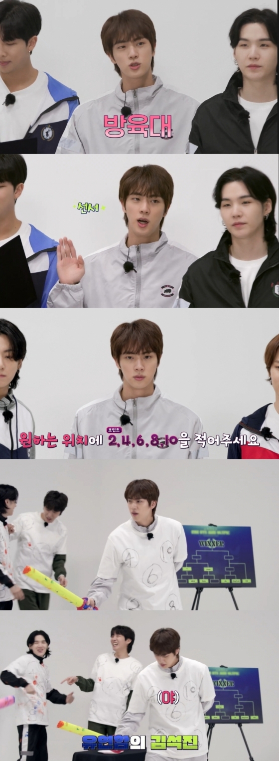 이날 '달려라 방탄'의 주제는 '미니 운동회'로 '선수단 선서', '4개 종목 경기', '종합 순위 시상식'순으로 진행됐다.