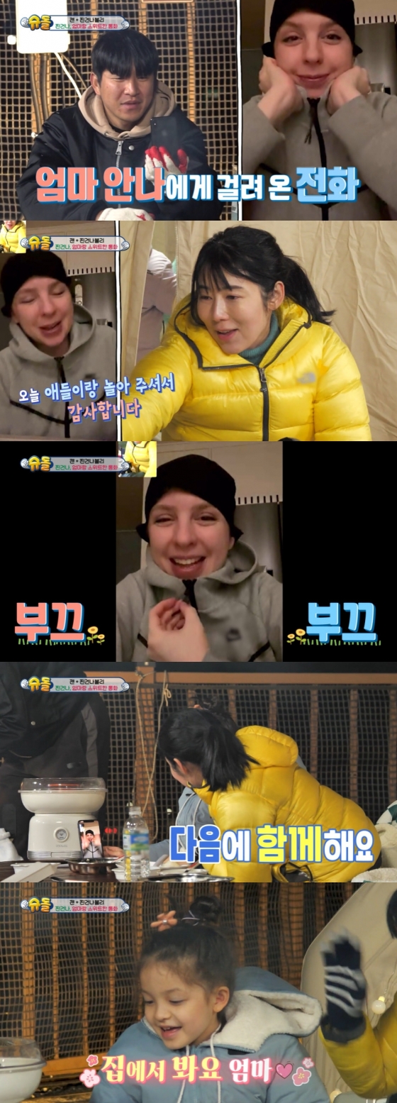 특히 이날 박주호의 아내이자 찐건나블리의 안나와 사유리가 영상통화를 통해 인사를 나눴다. 모자를 쓴 채 등장한 안나는 일본어로 "처음 뵙겠다"고 인사한 뒤 "오늘 애들이랑 놀아 주셔서 감사하다"라고 밝혔다.