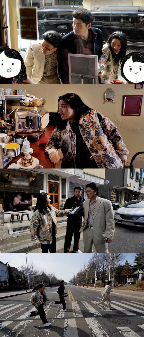 이런 가운데 공개된 사진 속에는 시민들 틈에서 잠입 수사를 하는 형사 2팀의 모습이 관심을 모은다. 카페 이곳저곳을 돌아다니며 '박 사장'의 흔적을 쫓고 있는 형사 2팀. '자연스럽게 스며들기'를 원했으나, 어디를 가도 뜨거운 시선을 받는 이들의 튀는 비주얼이 웃음을 자아낸다.