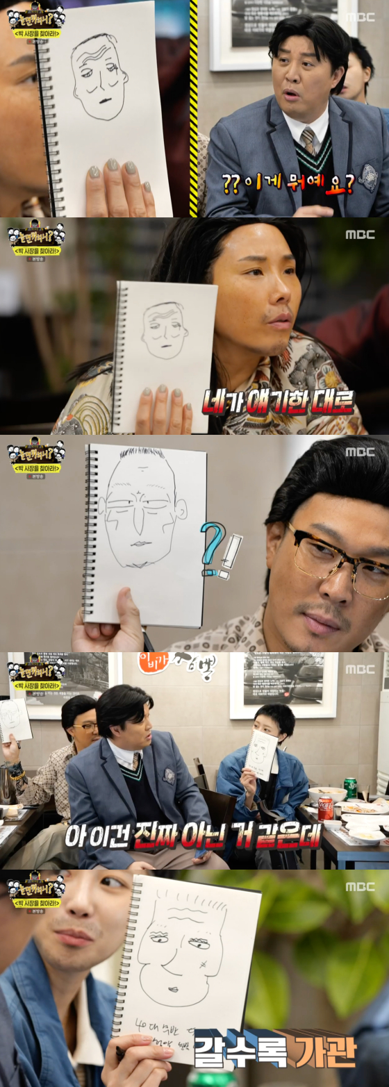 진도준하는 이어 그가 평소 모습을 잘 드러내지 않는다며 이목구비를 말로 설명했다. 신봉선과 하하, 이미주는 바로 몽타주를 그렸으나, 현실에는 절대 존재하지 않을 법한 인물을 창조해 폭소를 자아냈다. 진도준하 역시 "이건 진짜 아닌 것 같은데"라며 질색해 웃음을 더했다.