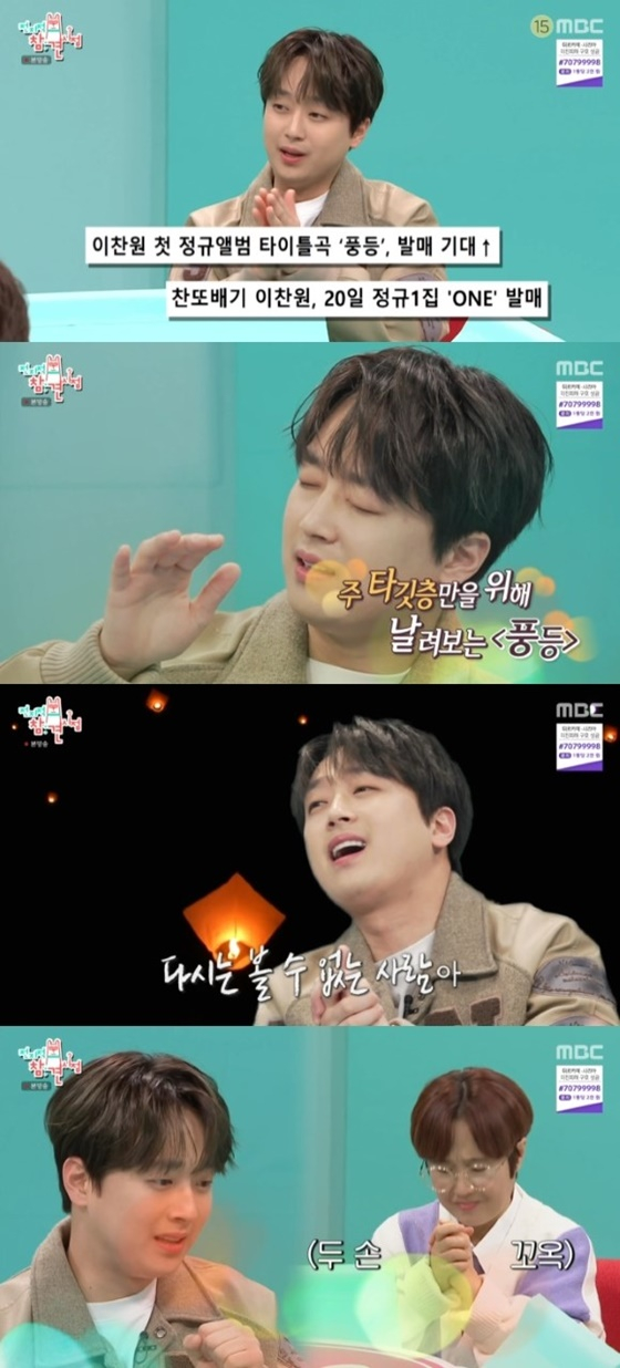 이찬원은 지난 18일 MBC 예능프로그램 '전지적 참견 시점'에 참견인으로 출연해 오는 20일 발매되는 첫 정규앨범 'ONE'의 타이틀곡 '풍등'을 공개했다.