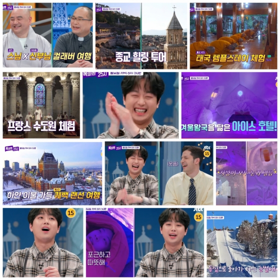 이날 방송에서는 불교 국가 태국의 템플 스테이 체험과 프랑스 수도원 체험, 하얀 이불 가득 캐나다 퀘벡의 랜선여행에 동심으로 돌아가는 눈썰매 체험까지 경건한 종교 체험부터 마음까지 시원해지는 겨울 체험 등 다채로운 여행의 세계가 담긴다.